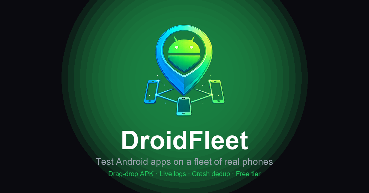 DroidFleet is a desktop app for pushing APKs to real Android phones over ADB. Drop a build, pick which connected devices get it, and watch install progress and live logs for every phone in one window. Electron wrapper over a Node.js ADB backend; clean taskbar app, no browser chrome, no CLI required.